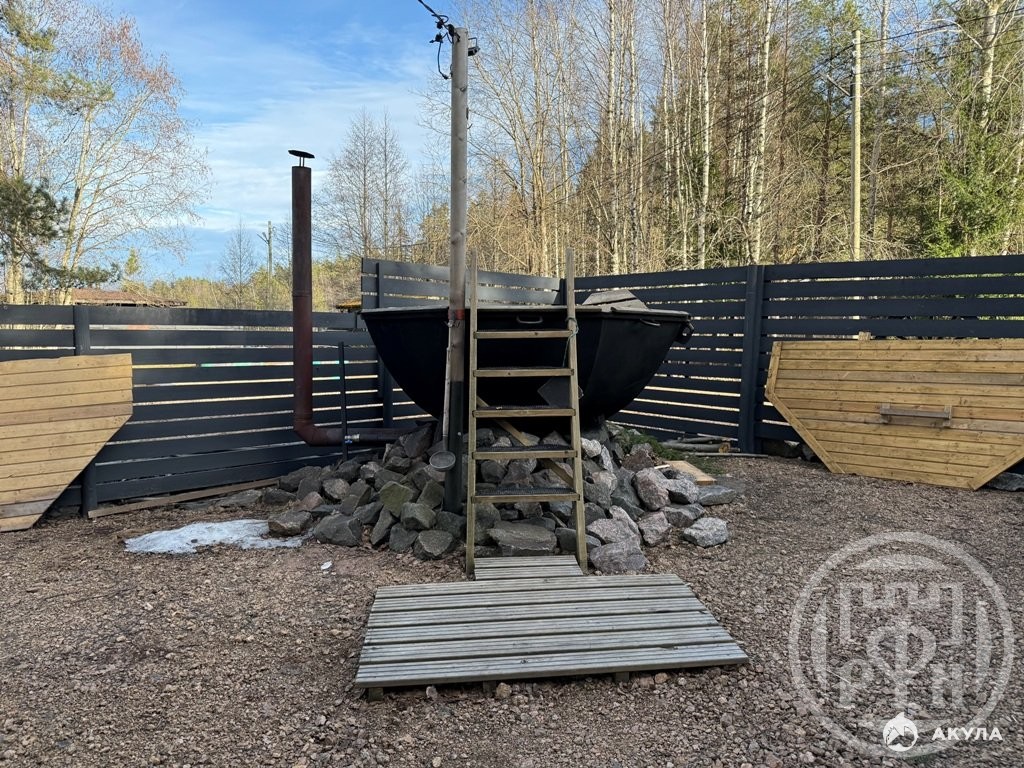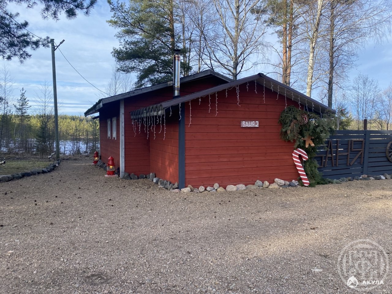 Русская баня на дровах на берегу озера, шикарное предложение, где после жаркой парной с веничками можно окунуться в прохладные воды озера, к берегу которого ведет тропа из деревянного настила. На берегу обустроен причал с лодками.