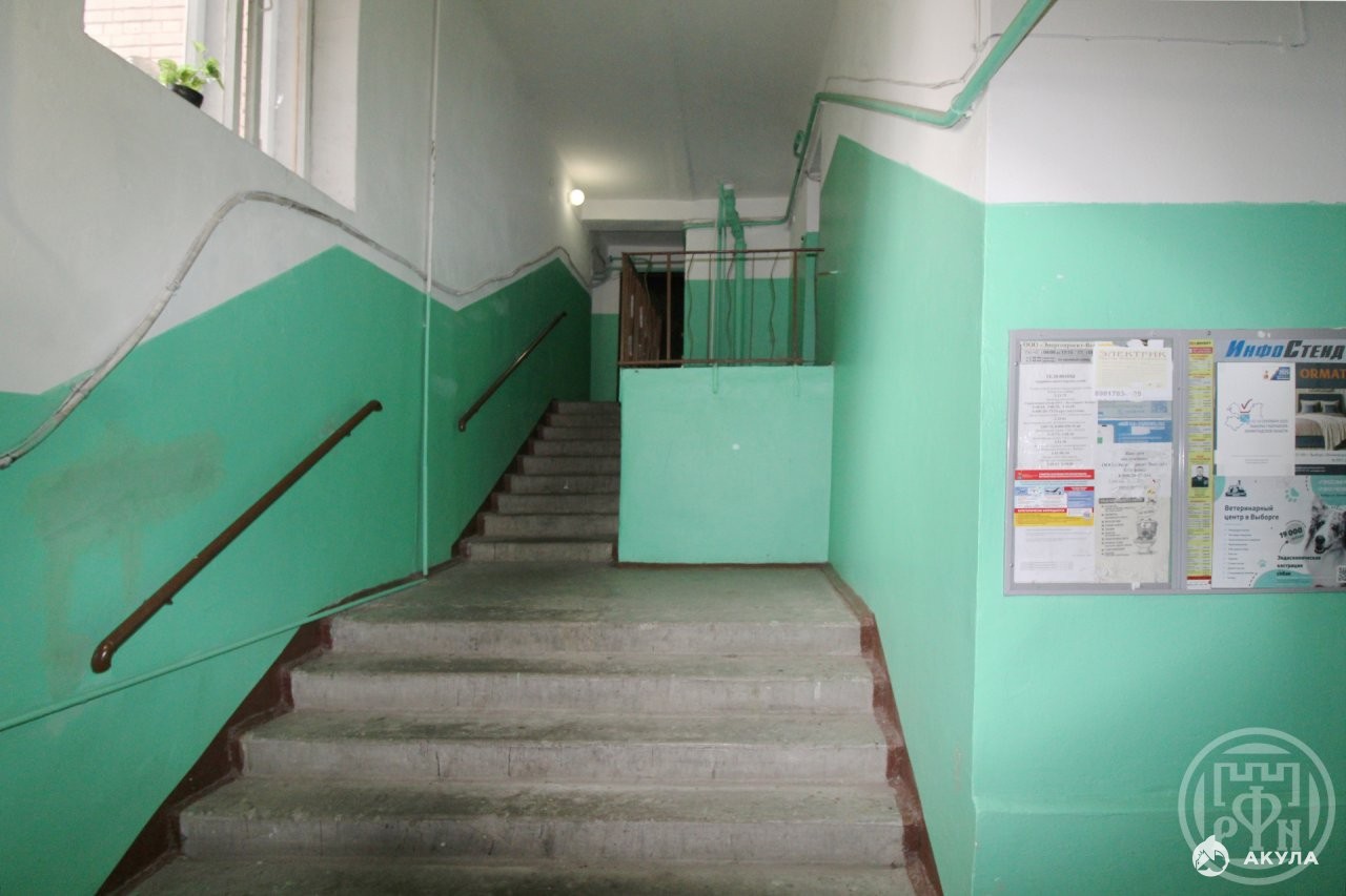 №341633 Двухкомнатная квартира в центральной части Выборга, пр. Ленина 9, удобный третий этаж пятиэтажного кирпичного дома, 1981 года постройки.