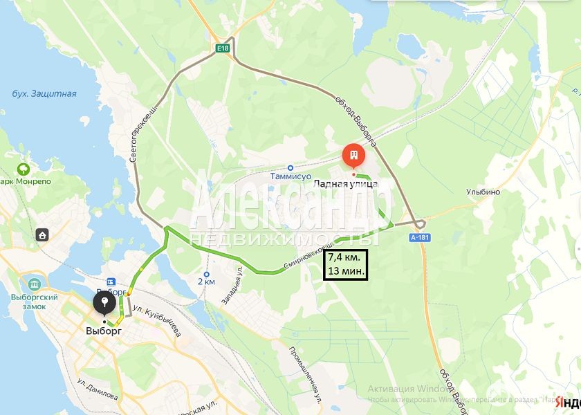 o Участок находится всего в 8 километрах от центральной части города — Красной площади Выборга.
